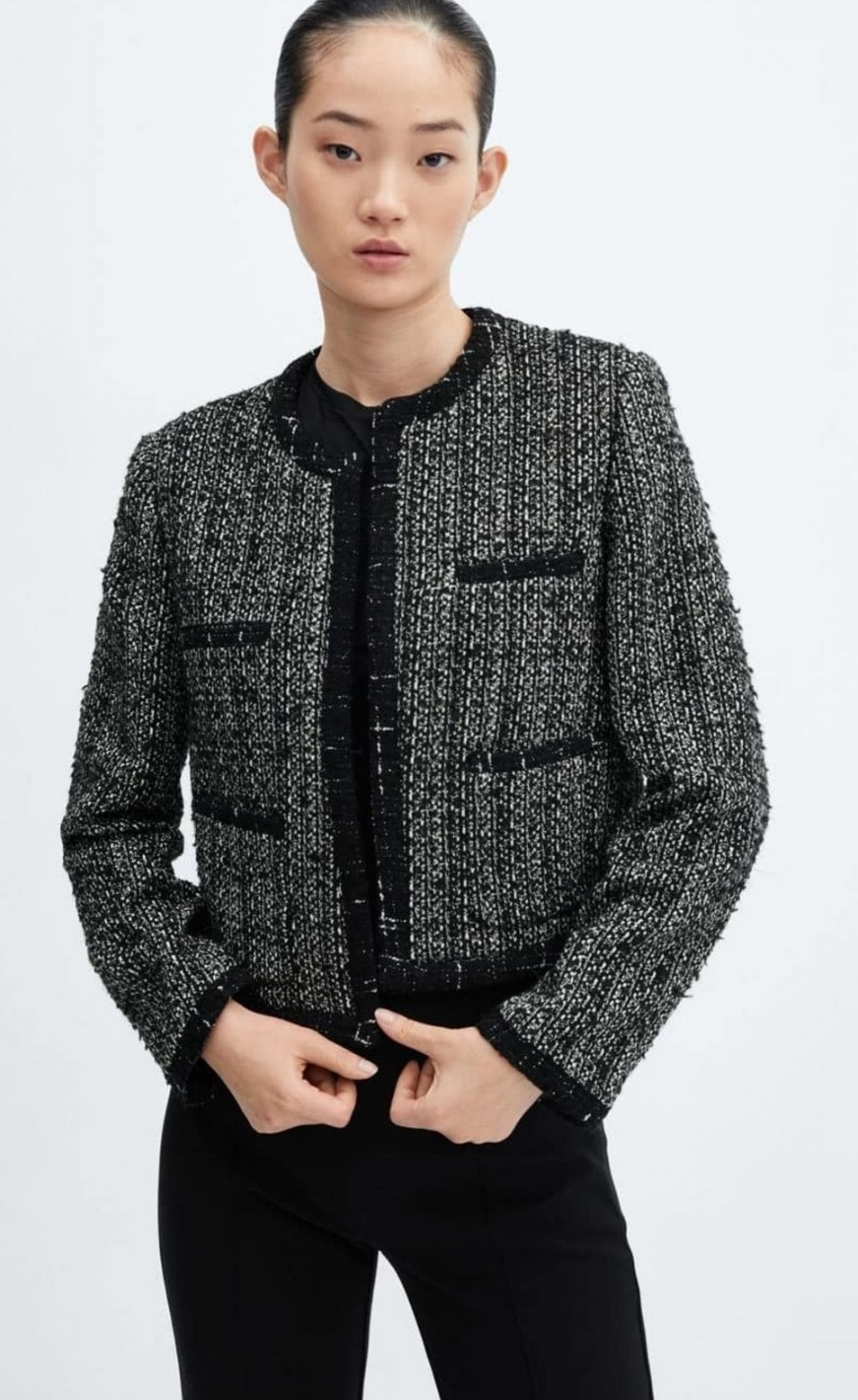 کت زنانه توید مشکی یک انتخاب لوکس، شیک و همیشهمد روز برای خانمهایی است که میخواهند استایلی خاص، مرتب و حرفهای داشته باشند. این کت با پارچهی توید بافتدار تولید شده که علاوهبر ظاهر زیبا، دوام بسیار خوبی دارد. طراحی الهام گرفته از استایل کلاسیک Chanel بوده و به همین دلیل است که روی استایلهای رسمی و نیمهرسمی فوقالعاده زیبا مینشیند.