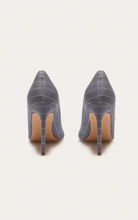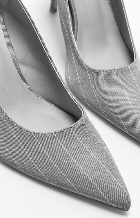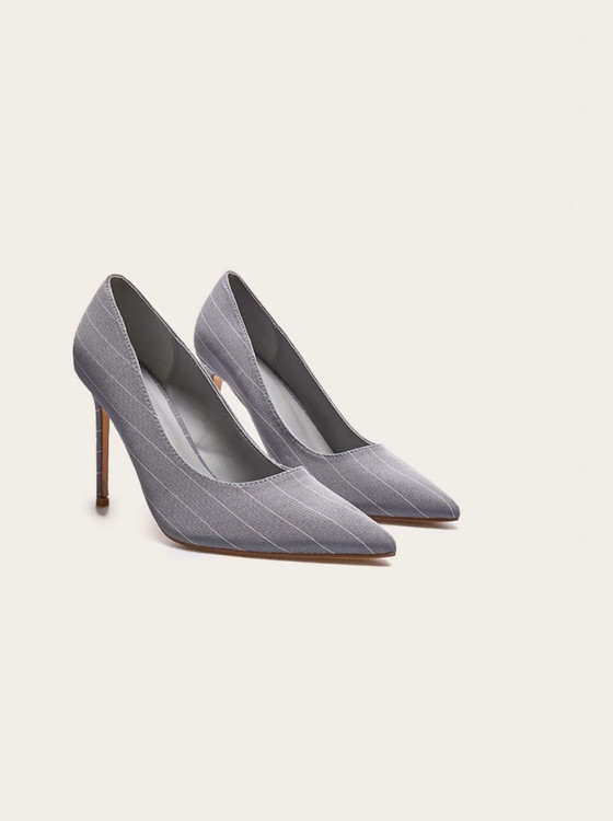 کفش پاشنه بلند زنانه مدل کلاسیک طوسی طرح راهراه – مناسب مهمانی و محل کار