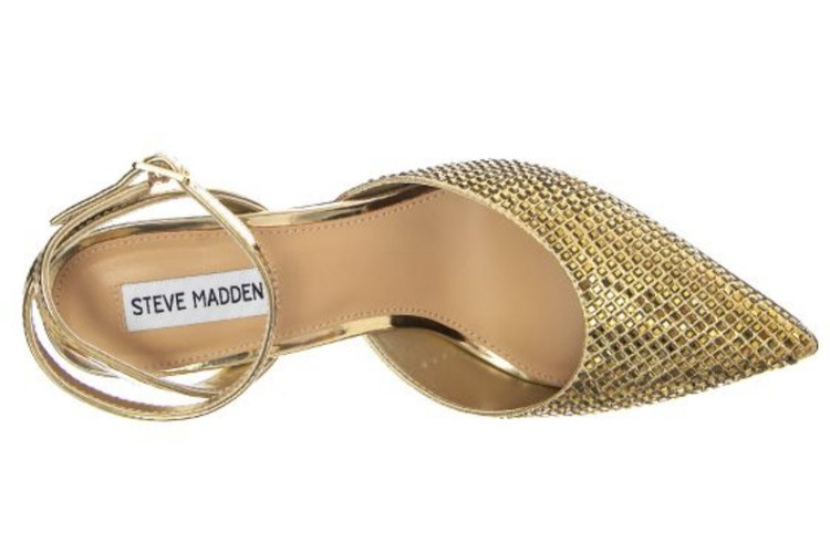 کفش پاشنهبلند طلایی زنانه استیو مدن مدل مجلسی بنددار با طرح پوستماری