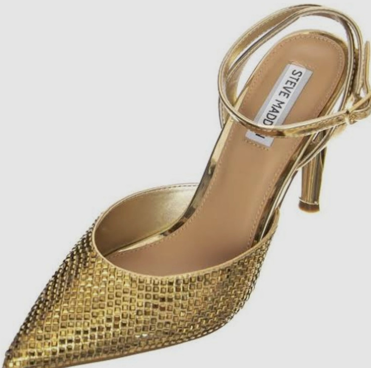 کفش پاشنهبلند طلایی استیو مدن یک انتخاب ایدهآل برای زنانی است که به دنبال ترکیب زیبایی، ظرافت و درخشش در استایل خود هستند. طراحی جذاب با بافت پوستماری متالیک، این مدل را به یکی از خاصترین گزینهها برای مهمانیها و مراسم رسمی تبدیل کرده است. بند دور مچ علاوه بر زیبایی، باعث ثبات بیشتر قدمها شده و تناسب پاشنه باریک، شکل پا را کشیدهتر و ظریفتر نشان میدهد.