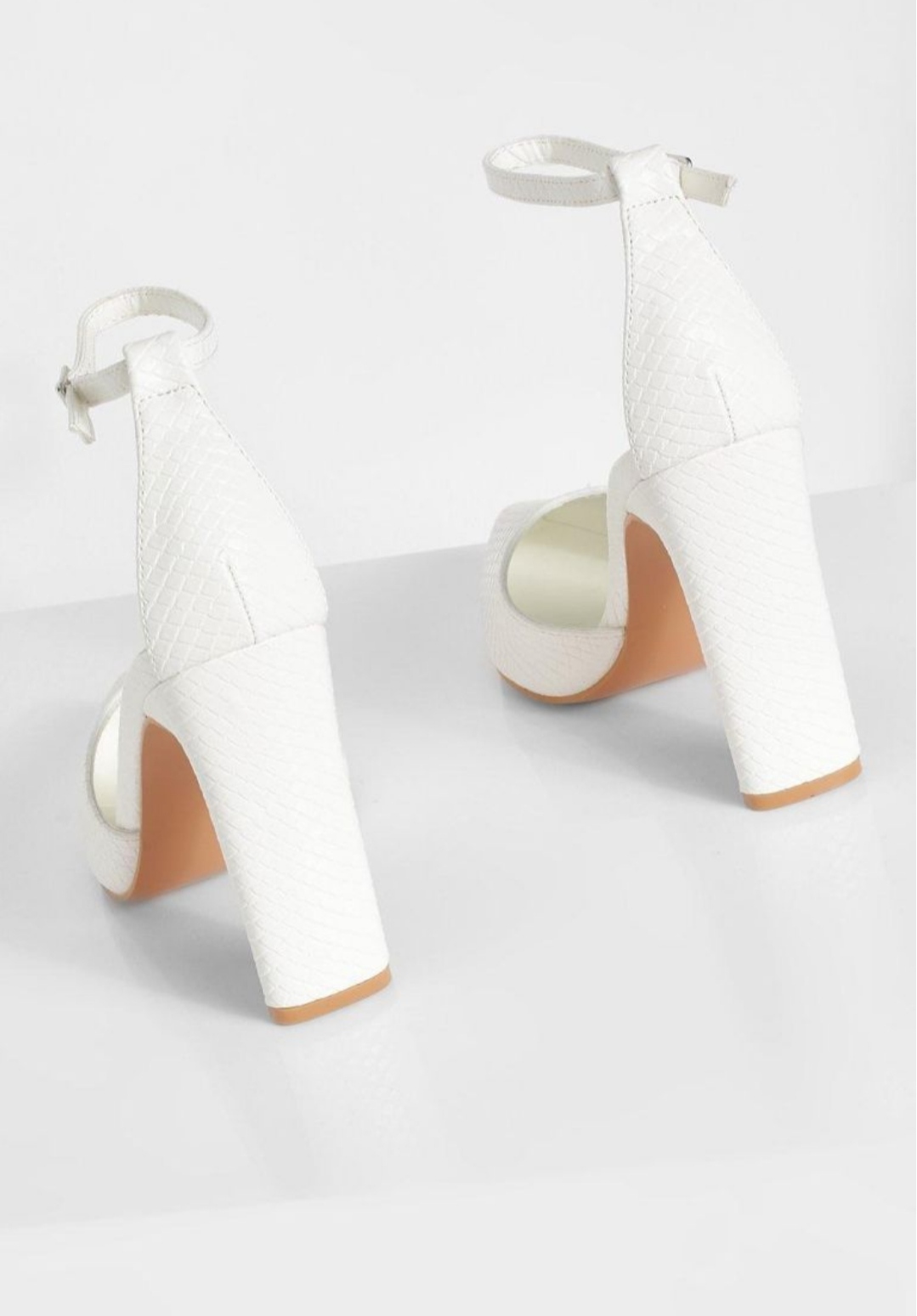 کفش پاشنه بلند زنانه سفید مدل بند مچی پاشنه پهن شیک و مجلسی نوکباریک طرحدار