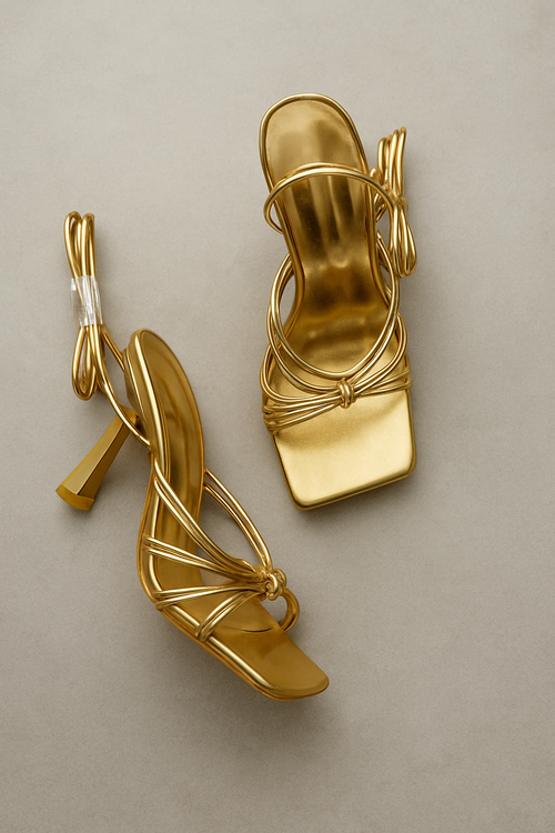 این صندل زنانه طلایی با طراحی بندهای ظریف و پاشنه مدادی، انتخابی ایدهآل برای استایلهای مجلسی و مراسم رسمی است. ترکیب پنجه مربعی و رنگ طلایی براق، به راحتی استایل شما را لوکستر و خاصتر میکند.