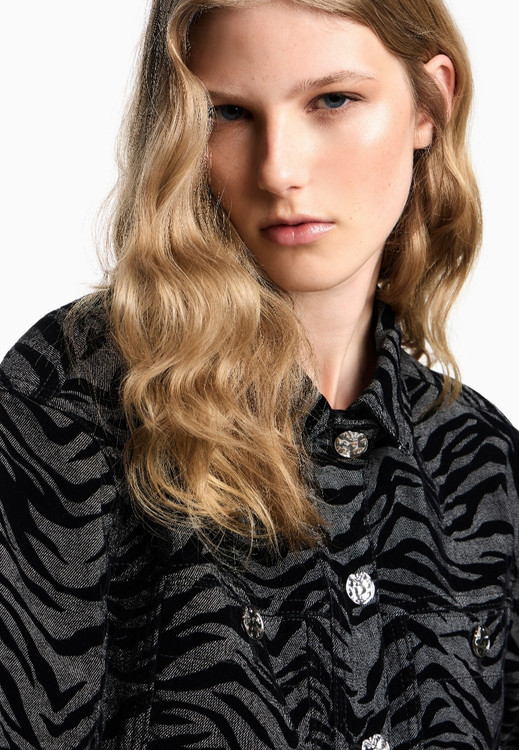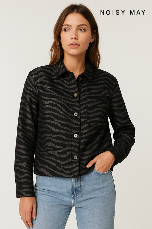 کت زنانه طرح زیبرا با پارچه براق مشکی–نقرهای، مناسب استایل روزمره و مجلسی. تنخور راحت، کیفیت بالا و مناسب برای مهمانی و کافه. خرید آنلاین با بهترین قیمت.
