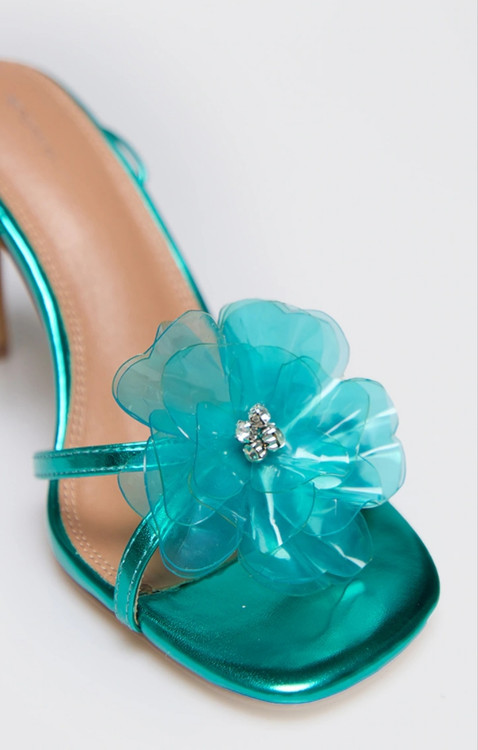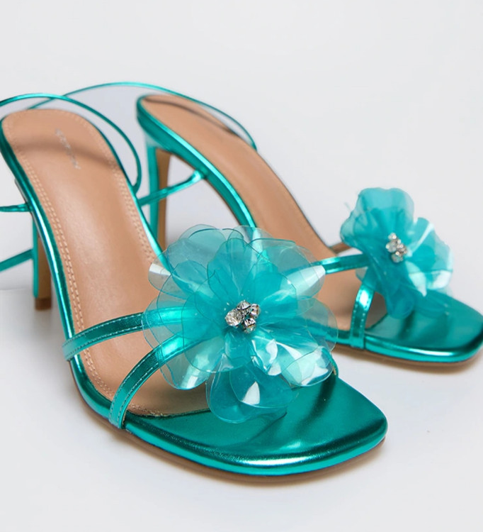کفش پاشنهبلند زنانه مدل گلدار فیروزهای، یک انتخاب جذاب و شیک برای مهمانی و مراسم رسمی است. رویهی متالیک براق، جلوهای لوکس و چشمنواز به این کفش میدهد و گل سهبعدی شفاف همراه با نگین، آن را تبدیل به مدلی خاص و متفاوت کرده است.