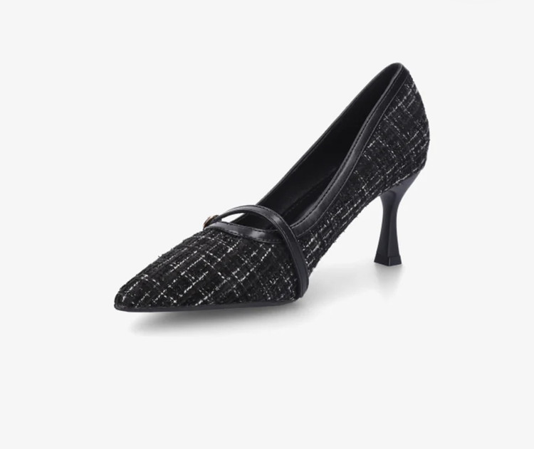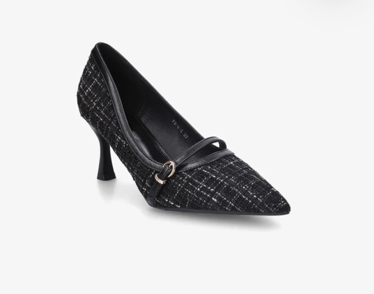 کفش زنانه پاشنه‌دار مدل مجلسی بندی پاشنه ۵ سانت، طراحی شیک پارچه‌ای و نوک تیز