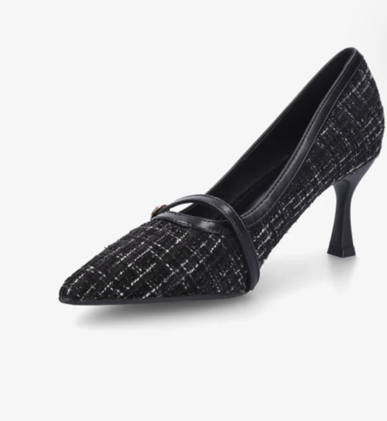 کفش زنانه پاشنه‌دار مدل مجلسی بندی پاشنه ۵ سانت، طراحی شیک پارچه‌ای و نوک تیز