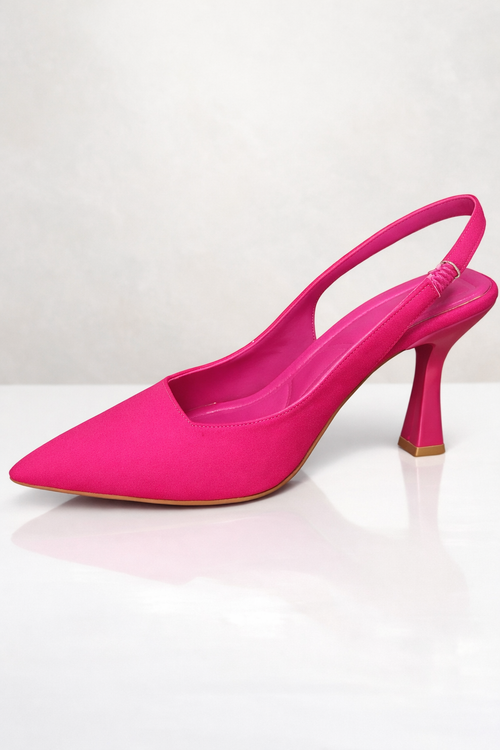 این کفش زنانه پاشنهدار اسلینگبک صورتی سرخابی انتخابی بینقص برای خانمهایی است که به استایل خاص، ظریف و مدرن اهمیت میدهند.