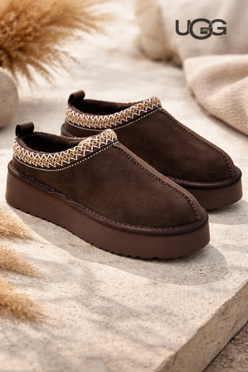 کفش اسلیپر پلتفرم UGG زنانه قهوه‌ای