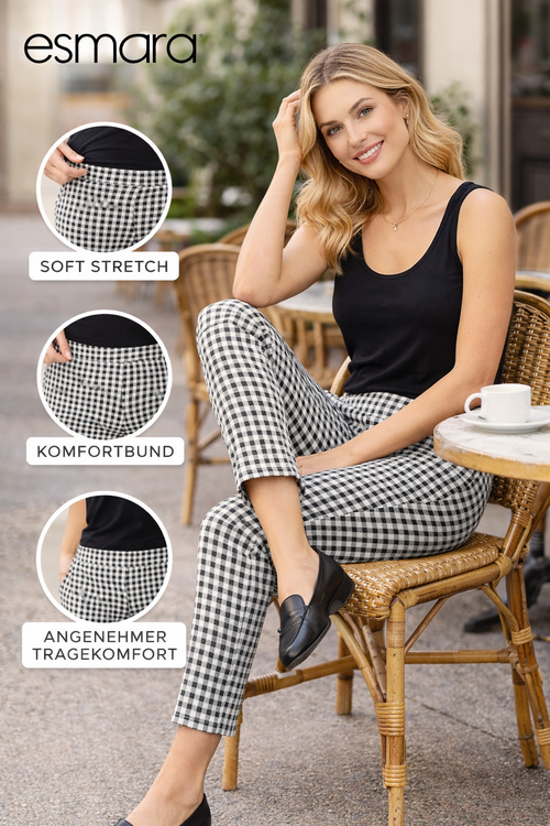 شلوار زنانه برند Esmara با طرح چهارخانه کلاسیک، کمر کشی راحت و پارچه نرم و کشی، انتخابی ایدهآل برای استایل روزمره، محل کار و استفاده طولانیمدت.