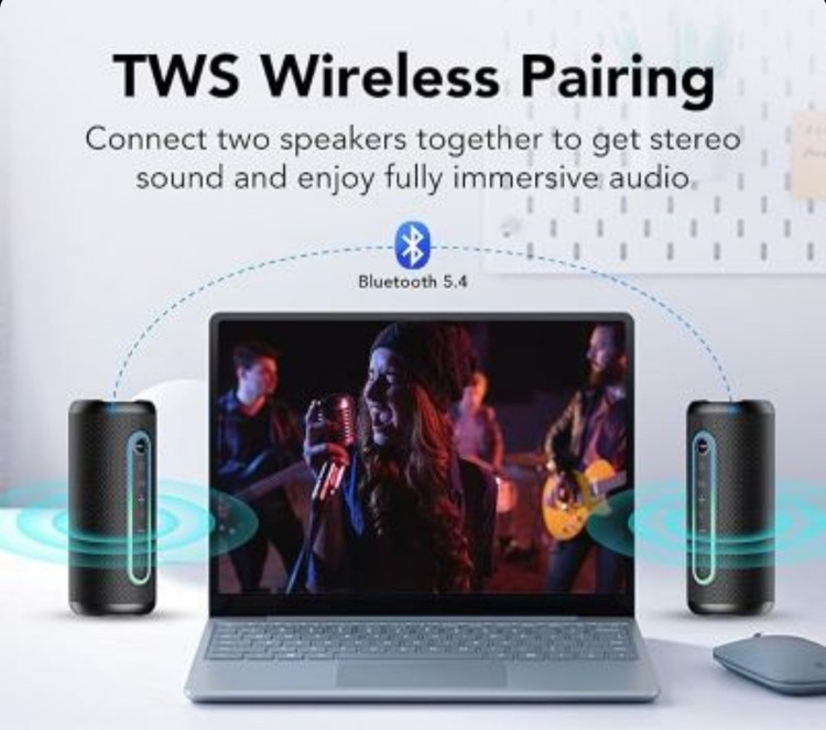صدای استریو قدرتمند ۲۵ واتی: این بلندگوهای بلوتوث دارای توان خروجی چشمگیر تا ۳۰ وات هستند که به راحتی میتوانند فضایی به مساحت ۱۰۰ متر مربع را پر کنند. این بلندگوهای بلوتوث بیسیم که مجهز به دو بلندگوی مستقل ۶۰ میلیمتری فول رنج و فناوری پردازش صدای دیجیتال DSP هستند، تضمین میکنند که هر نت واضح و شفاف باشد، با بیس عمیق و قدرتمند، صداهای میانی غنی و طبیعی و صداهای زیر روشن و دلنشین، و تجربه شنیداری بینظیری را به گوشهای شما ارائه میدهند.