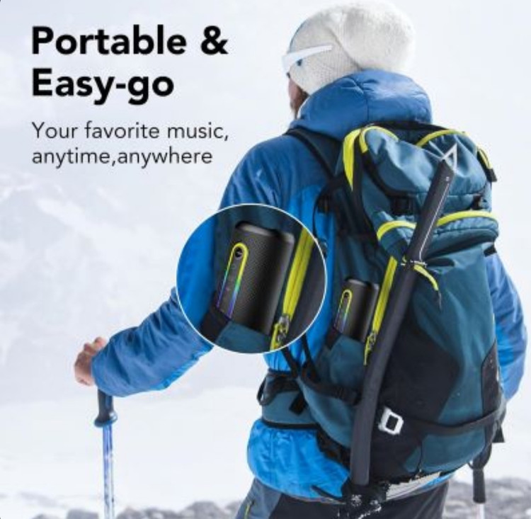 ضد آب و بادوام با استاندارد IPX7: تیم طراحی، جنس بدنه این بلندگوی بلوتوث ضد آب را از بین ۷۸ نوع ماده مقاوم در برابر سایش انتخاب کرده و با فناوری بافت ۹ لایه تقویت شده است، بنابراین حتی در صورت افتادن از ارتفاع ۵ متری نیز آسیبی نمیبیند. قابلیت آببندی عالی آن، رتبه ضد آب IPX7 را به آن میدهد و به بلندگوی بیسیم اجازه میدهد تا به مدت ۳۰ دقیقه تا عمق ۳.۸ فوت در آب غوطهور بماند. این بلندگو برای پیادهروی، کمپینگ، کوهنوردی و دوچرخهسواری عالی است. عمر باتری 30 ساعته و صدای استریو TWS: این بلندگوی بلوتوث قابل حمل به یک باتری لیتیومی قابل شارژ 4000 میلیآمپر ساعتی مجهز شده است که تنها با 3 ساعت شارژ، تا 30 ساعت پخش موسیقی را فراهم میکند. علاوه بر این، میتوانید چراغهای RGB را خاموش کنید تا عمر باتری بلندگو افزایش یابد. این بلندگوی بلوتوث بیسیم دارای فناوری اتصال TWS است که به شما امکان میدهد دو بلندگوی قابل حمل را برای تجربه شنیداری شبیه به صدای فراگیر دالبی متصل کنید، گویی در یک سینمای خصوصی هستید.