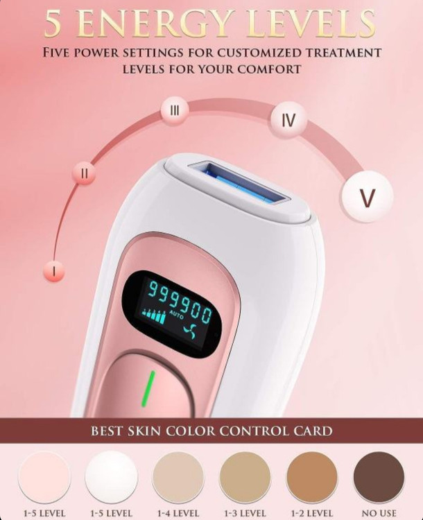 5 سطح انرژی: این دستگاه رفع موهای زائد AMINZER IPL دارای 5 سطح انرژی قابل تنظیم است که برای حساسیتهای مختلف پوستی و نواحی تحت درمان مناسب است. طراحی 2 دکمهای، استفاده آسان و سطح و حالت قدرت قابل تنظیم. و مجهز به یک صفحه نمایش LCD بزرگ، میتوانید تنظیمات عملیاتی مورد استفاده را به وضوح کنترل کنید.