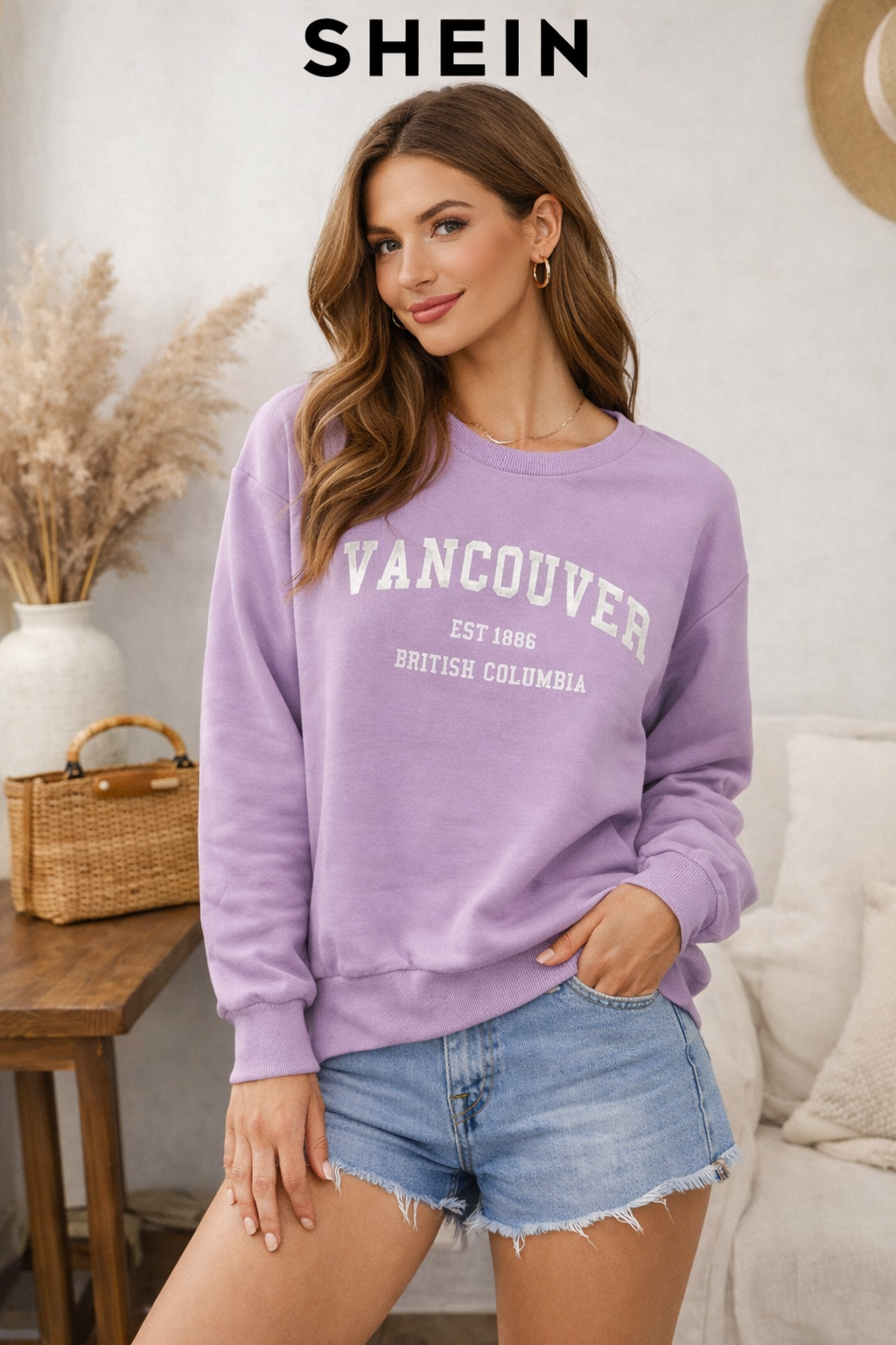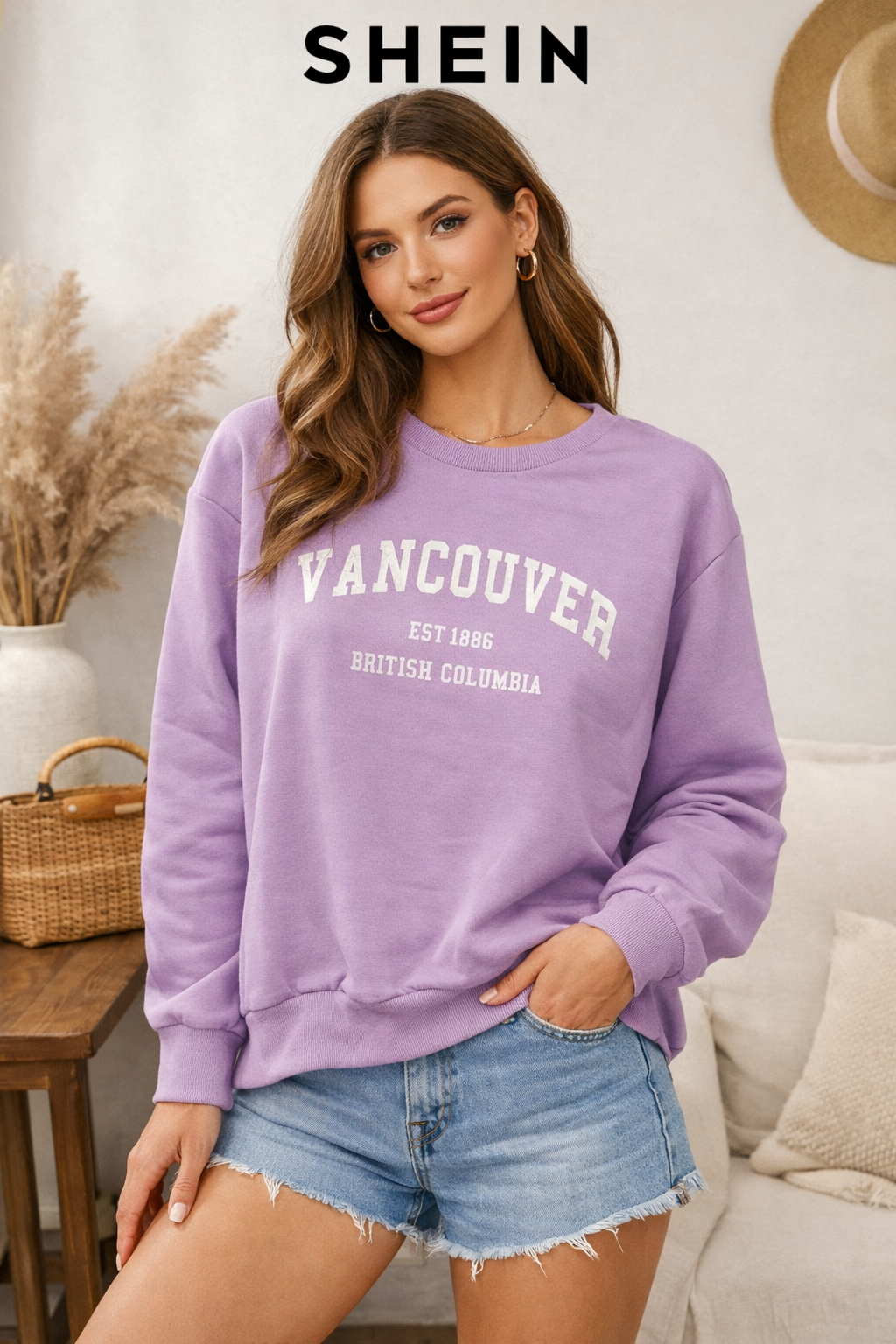 سویشرت زنانه SHEIN مدل Vancouver در رنگ یاسی ترند، انتخابی شیک و راحت برای استایل روزمره و اسپرت. این مدل با سایز XL، فیت آزاد و پارچه دورس باکیفیت، مناسب استفاده روزانه، پاییز و زمستان است.