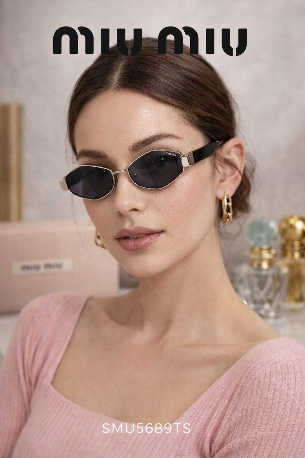 عینک آفتابی MIU MIU SMU5689TS یکی از خاصترین و ترندترین مدلهای برند لوکس میو میو است که با طراحی هندسی مدرن و فریم فلزی ظریف، انتخابی ایدهآل برای خانمهای شیکپسند محسوب میشود.