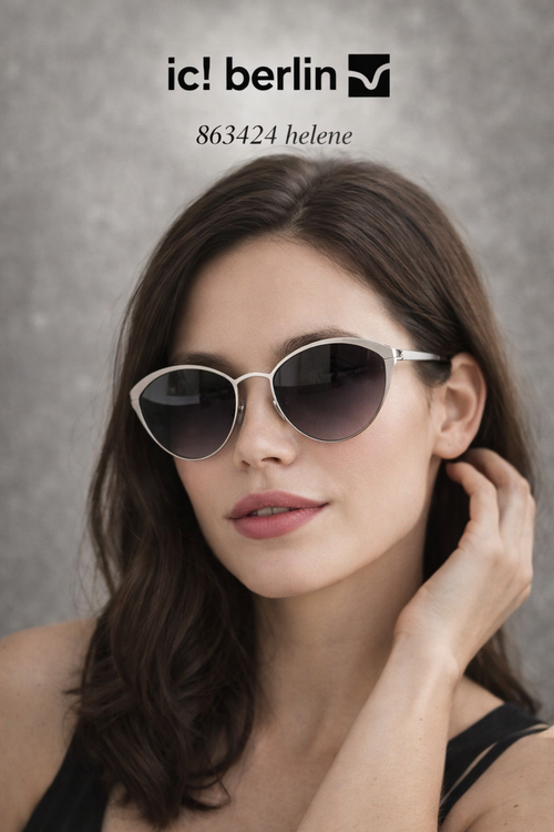 عینک آفتابی زنانه ic! berlin مدل 863424 Helene ترکیبی از طراحی مینیمال آلمانی و تکنولوژی بدون پیچ (Screwless System) است. این مدل با فریم استیل ضدزنگ فوقسبک و طراحی چشمگربهای مدرن، انتخابی لوکس برای استایلهای رسمی و روزمره محسوب میشود.