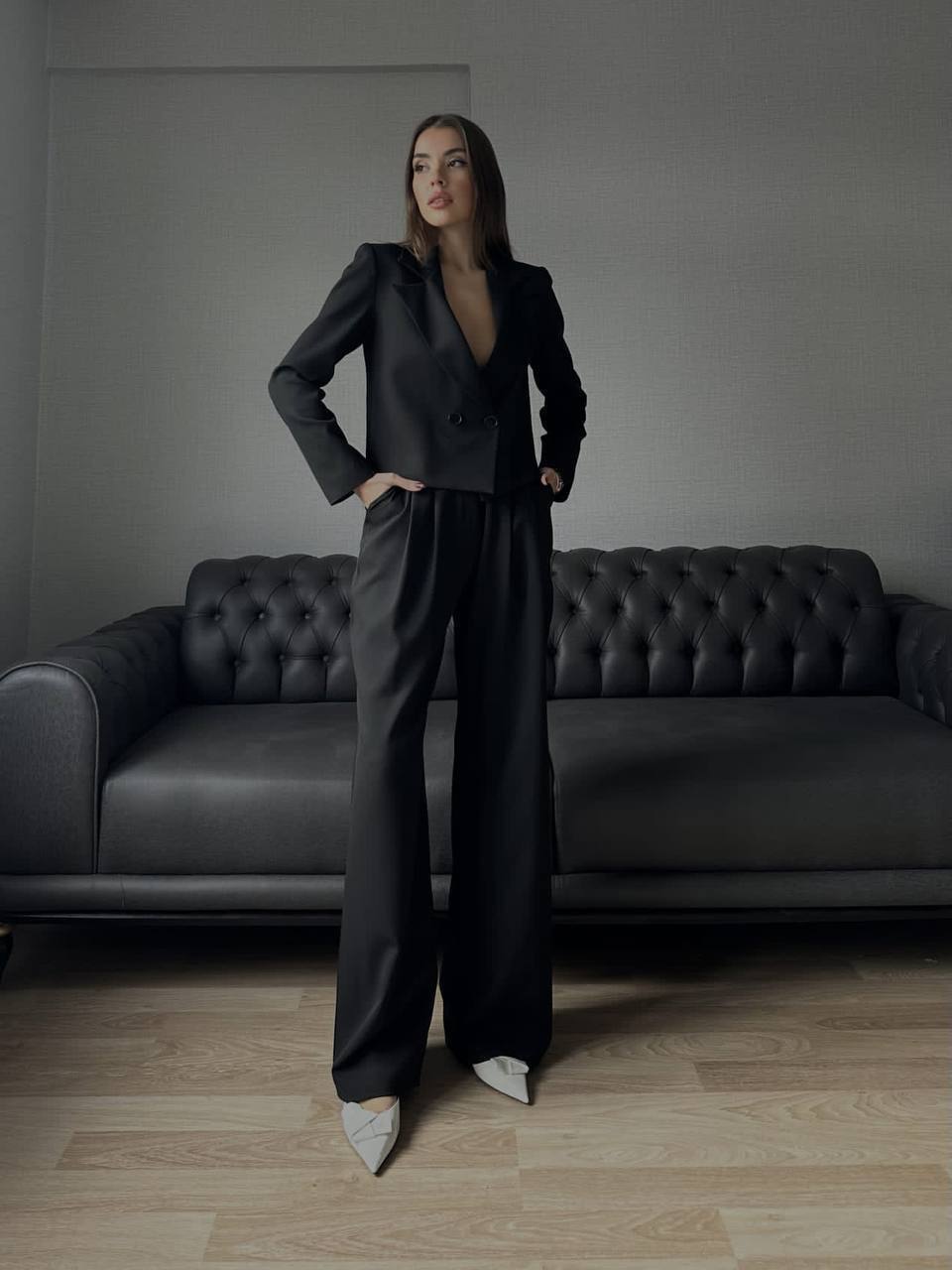 با این کت و شلوار زنانه مشکی، استایلی شیک، قدرتمند و متفاوت داشته باشید. طراحی مدرن در کنار فرم آزاد شلوار بگ، باعث میشود همزمان راحت و خاص دیده شوید. اگر به دنبال یک انتخاب مطمئن برای استایل رسمی و مجلسی هستید، این مدل یکی از پرفروشترین انتخابها خواهد بود.