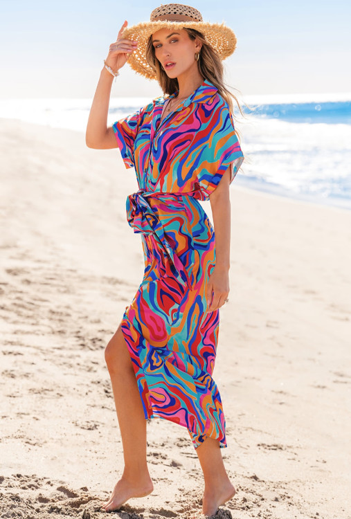 پیراهن ساحلی زنانه Cupshe مدل ماکسی طرحدار رنگی