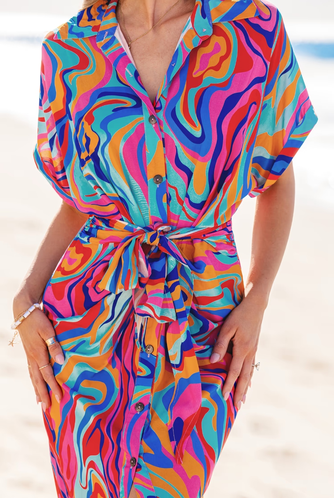 اگر به دنبال یک استایل خاص، شاد و متفاوت برای تابستان هستید، این پیراهن ساحلی زنانه Cupshe سایز L انتخابی بینقص برای شماست. طراحی ماکسی با طرحهای رنگی موجدار و ترکیب رنگهای جذاب، آن را به گزینهای ایدهآل برای ساحل، سفر، مهمانیهای تابستانی و استایل کژوال تبدیل کرده است.