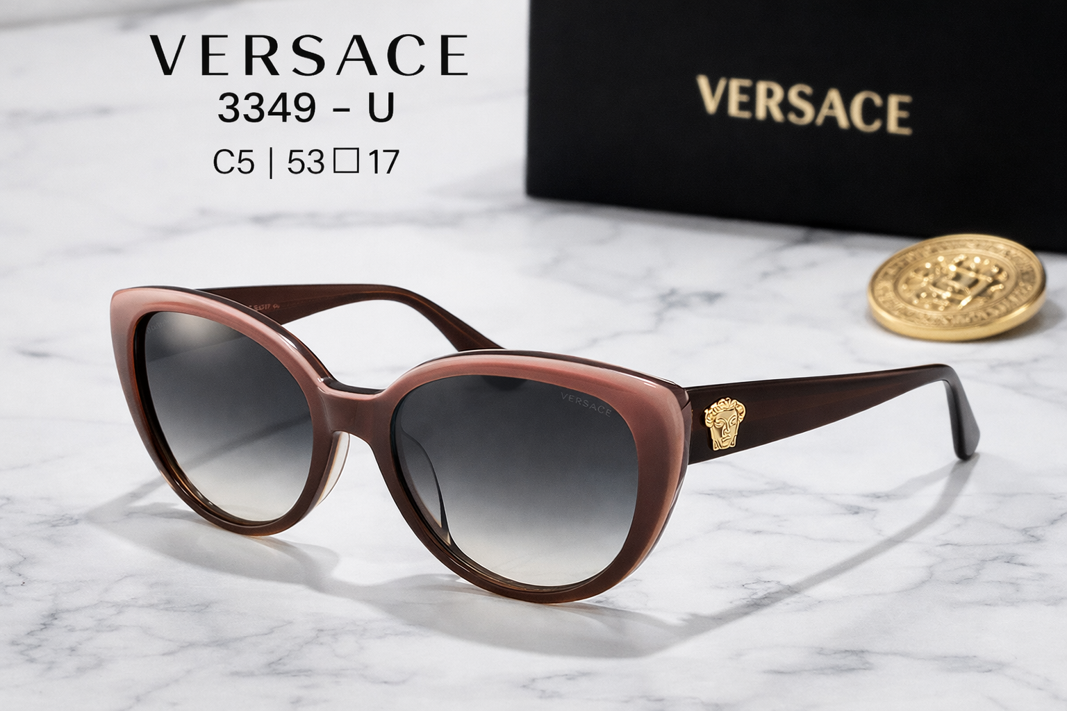 خرید عینک آفتابی ورساچه مدل 3349-U C5 سایز 53-17 با ضمانت اصالت کالا. طراحی لوکس با فریم قهوهای، لنز دودی گرادینت و لوگوی مدوسا. ارسال سریع و بهترین قیمت بازار.