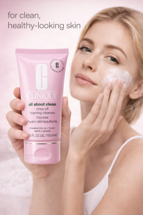 ژل شستشوی صورت فومی Clinique مدل All About Clean مناسب پوست مختلط تا چرب