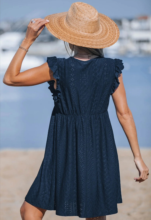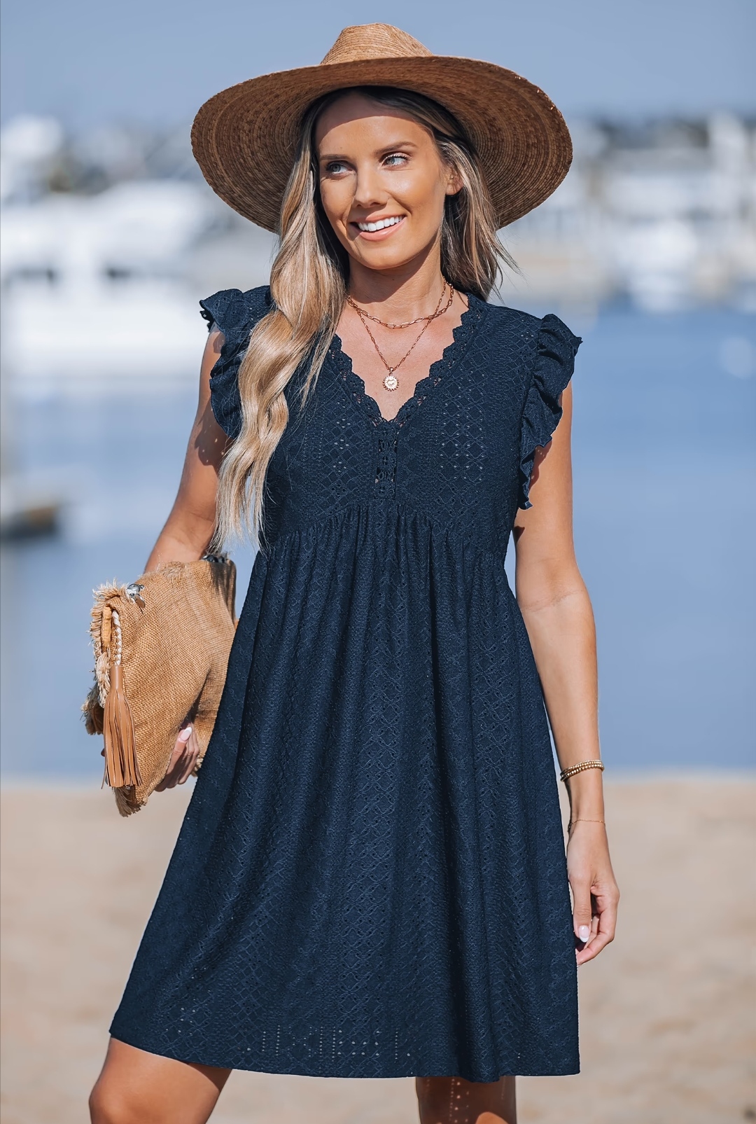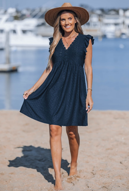 پیراهن ساحلی زنانه سرمهای با پارچه خنک گیپوری، مناسب سفر و روزهای گرم. بسیار سبک، راحت، تنخور آزاد و شیک. ارسال سریع + تضمین کیفیت.