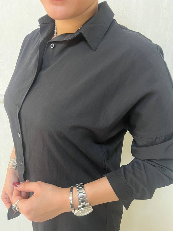پیراهن مجلسی زنانه مدل دکمه دار مردانه از برند هپینیس کشور ترکیه جنس پارچه ژلاتین سیاه استانبول کاملا مجلسی و کاربردی در یک رنگ مشکی موجود هستش.