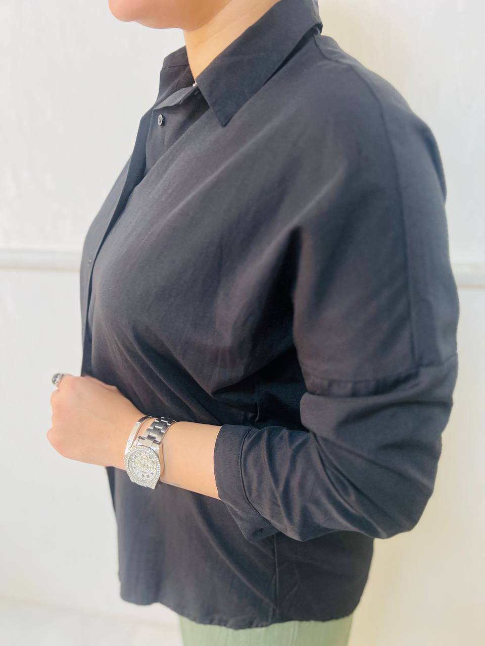 پیراهن مجلسی زنانه مدل دکمه دار مردانه از برند هپینیس کشور ترکیه جنس پارچه ژلاتین سیاه استانبول کاملا مجلسی و کاربردی در یک رنگ مشکی موجود هستش.