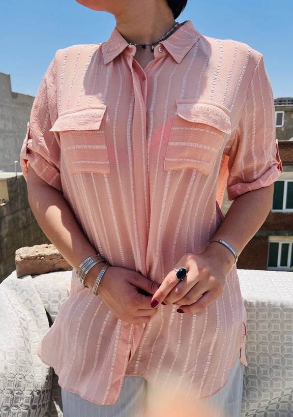 پیراهن مجلسی زنانه وارداتی از برند یقه مردانه دکمه دار تک رنگ و تک سایز هستش