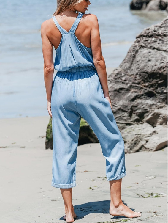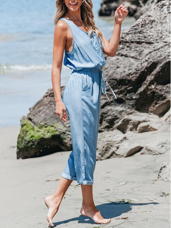 این سرهمی زنانه آبی روشن انتخابی عالی برای روزهای گرم سال است. پارچه سبک و تنفسپذیر آن باعث میشود حتی در طول روز هم احساس راحتی کنید. طراحی آزاد، کمر کشی قابل تنظیم و پارچه نرم، این مدل را به گزینهای ایدهآل برای استفاده روزمره، گردش، خرید، سفر و استایلهای کژوال تبدیل کرده است.